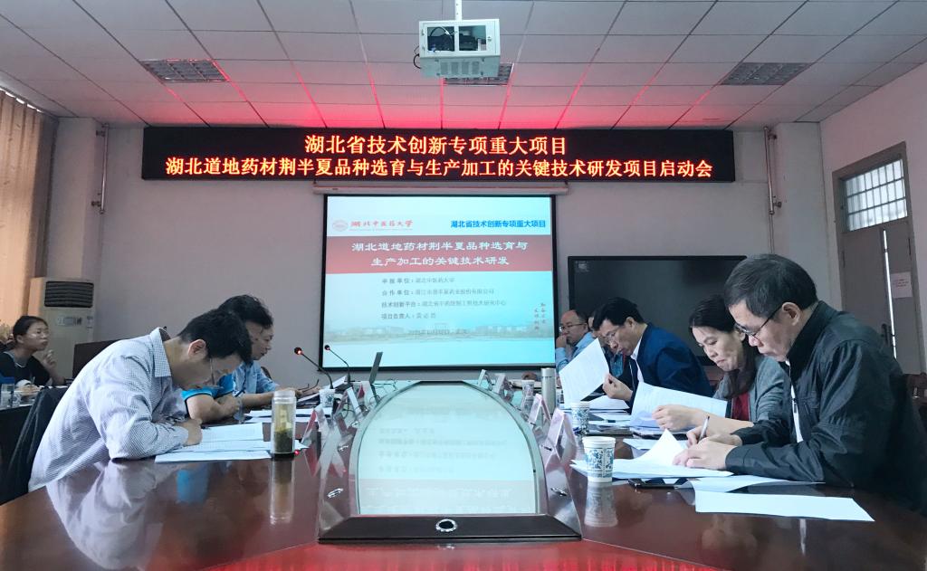 10月12日,药学院组织召开2019年湖北省技术创新专项重大项目“湖北道地药材荆半夏品种选育与生产加工的关键技术研发”项目启动会。项目负责人黄必胜教授,郑国华教授、吴和珍教授、许汉林教授,潜半夏药业有限公司袁海军董事长,项目课题组全体成员和相关研究生参加了会议。启动会由吴和珍主持。