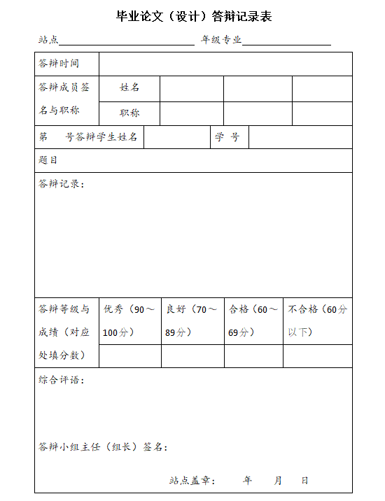 答辩小组主任(组长)签名: 站点盖章: 年 月 日 |